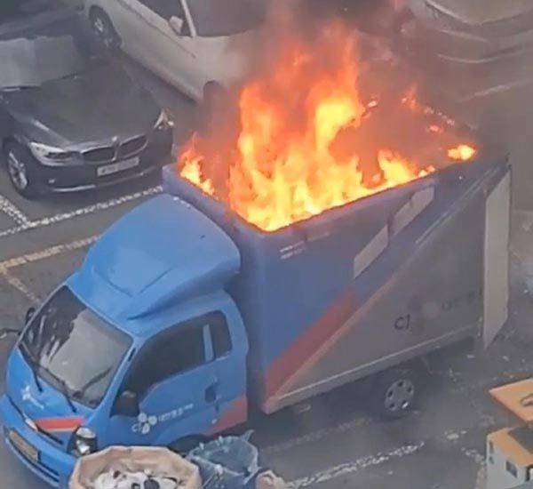 아파트 단지 내 택배차량 적재함에서 불.."인명 피해 없어"