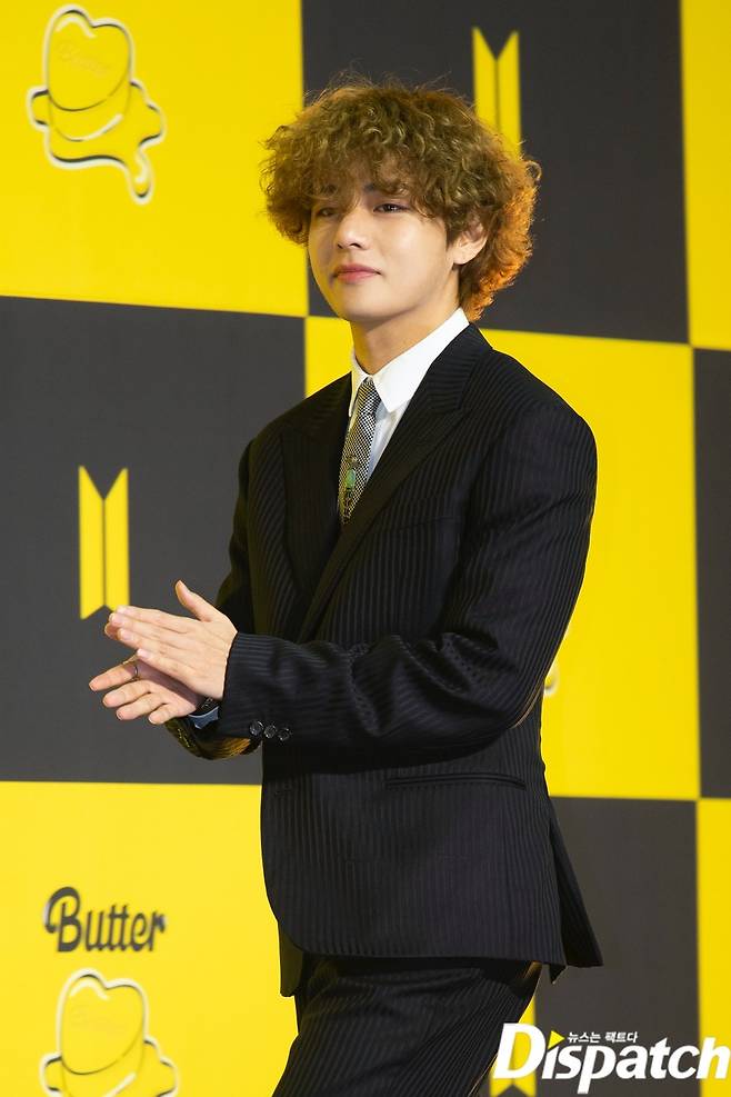 [Dispatch=송효진기자] 그룹 '방탄소년단(BTS)' 뷔가 21일 오후 서울 송파구 방이동 올림픽공원 올림픽홀에서 열린 새 디지털 싱글 'Butter' 발매 기념 글로벌 기자간담회에서 포즈를 취하고 있다.