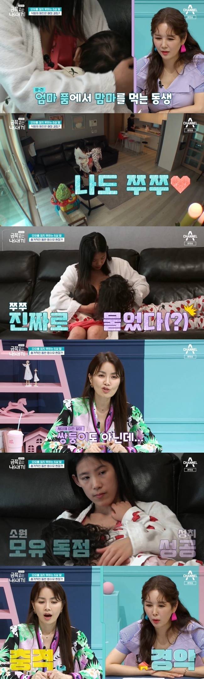 엄마가 돌을 맞은 동생에게 모유를 주는 모습을 지켜보던 금쪽이는 "나도 쭈쭈"라며 졸랐다.