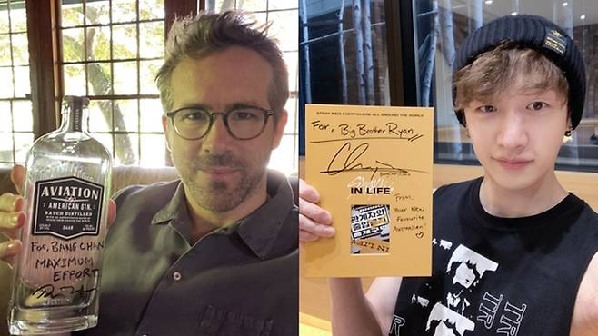 '데드풀'로 국내에서도 큰 사랑을 받는 배우 라이언 레이놀즈가 24일(한국시간) 자신의 SNS 계정에 자신이 직접 사인한 술병을 인증한 사진을 게시하며 "두 가지 할 말이 있다"고 말해 시선을 모았다. 그는 "첫 번째, 여기 방찬을 위한 사인이 있다. 이번 주 방찬에게 보낼 거다. 두 번째, 스트레이 키즈의 새로운 팬으로서 사인을 부탁해도 될까? #새롭게 좋아하는 호주인"이라는 글을 남겼다.