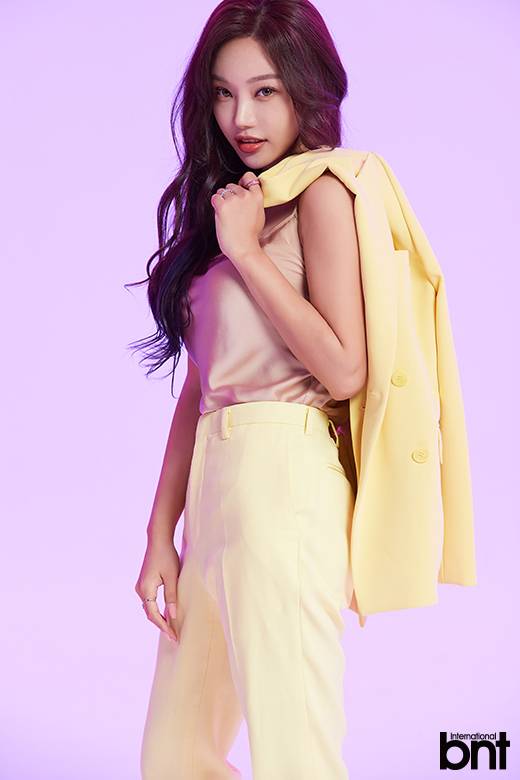 총 세 가지 콘셉트로 진행된 촬영에서 그는 산뜻한 옐로 수트 세트업에 은은한 분위기를 더하는가 하면 화이트 러플 점프 수트에 양갈래 브레이드 헤어로 사랑스러움을 어필했다. 이어 실루엣이 돋보이는 올 블랙의 레더 룩을 착용해 시크한 인상을 자아냈다.