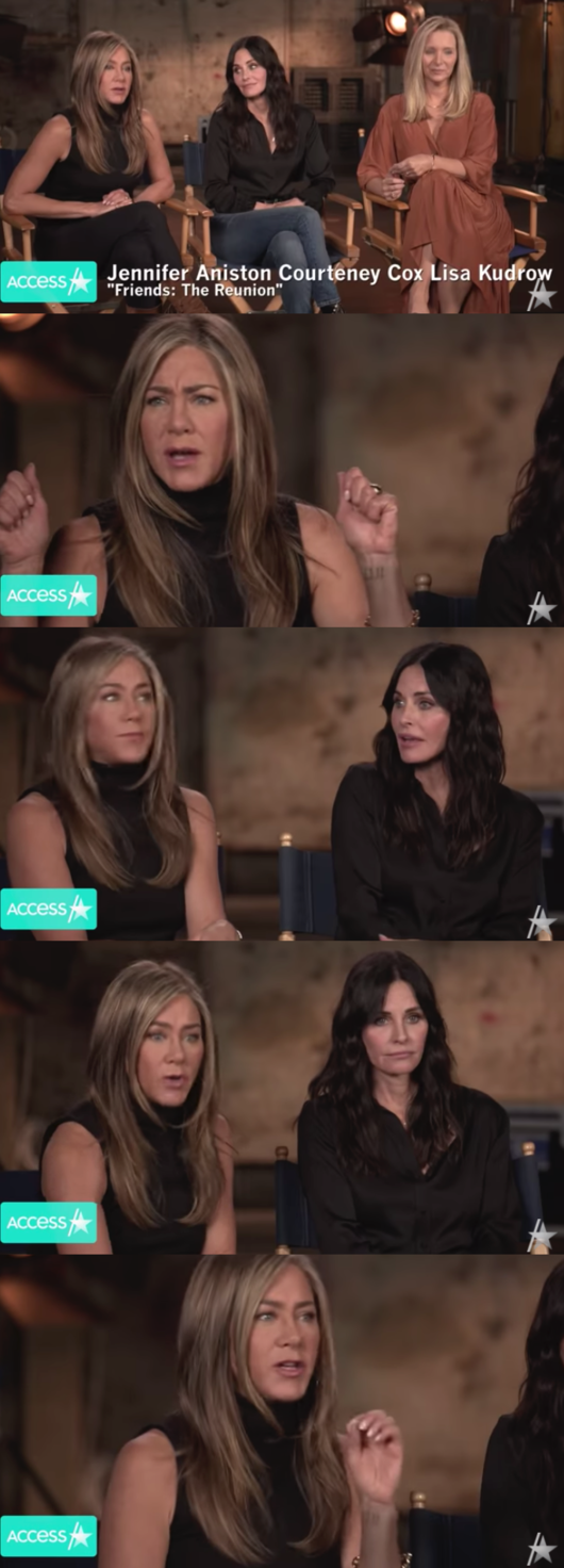 제니퍼 애니스톤은 최근 매체 인터뷰에서 시트콤 ‘프렌즈’의 코트니 콕스, 리사 쿠드로와 함께 다채로운 이야기를 나눴다. 이들은 ‘프렌즈: 더 리유니언(Friends: The Reunion)’ 공개를 앞두고 지난 시즌들을 돌아봤다.