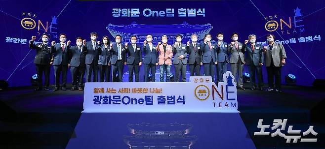 25일 서울 종로구 KT스퀘어에서 열린 '광화문 One팀' 출범식에서 참석자들이 기념촬영을 하고 있다. 이한형 기자