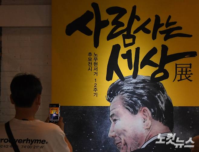 노무현 전 대통령 서거 12주기인 23일 오후 서울 인사동 마루아트센터에서 열린 추모전시회 ‘사람사는 세상전’을 찾은 시민들이 작품들을 둘러보고 있다. 황진환 기자
