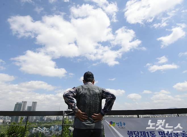 비 그치고 미세먼지 농도가 '보통'으로 회복된 25일 오후 서울 성동구 응봉산에서 바라본 하늘이 푸르다. 이한형 기자