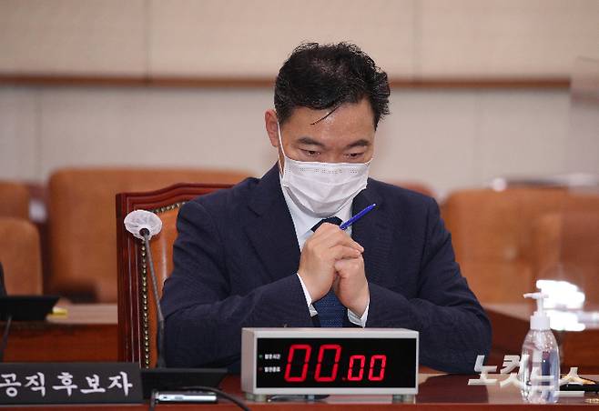 김오수 검찰총장 후보자가 26일 오후 국회 법제사법위원회에서 열린 인사청문회에서 생각에 잠겨있다. 윤창원 기자