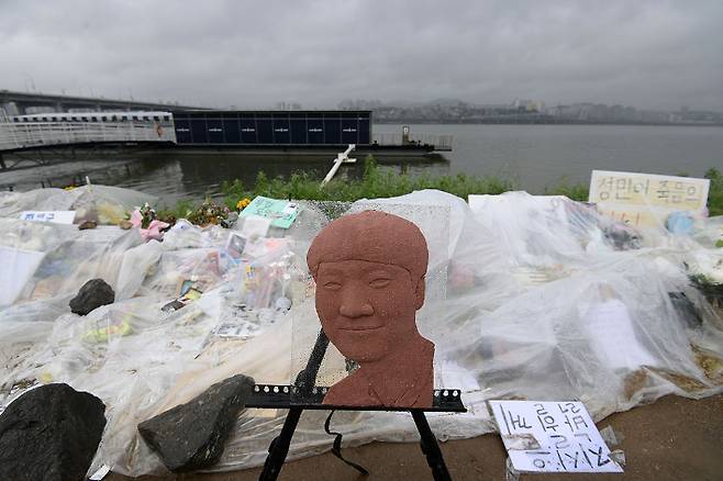 경찰이 '한강 대학생 사망 사건'과 관련한 각종 의혹에 대해 수사 상황을 발표한 27일 오후 서울 반포한강공원 수상택시 승강장 인근에 숨진 손정민씨를 추모하는 글과 물품들이 놓여 있다. 경찰은 국과수 부검 결과 손씨의 사인이 익사로 추정된다는 소견이 나온 만큼 익사에 이르게 된 경위에 초점을 맞춰 사망 전 행적을 확인하는 데 주력하고 있다. 경찰은 국과수로부터 "타인의 혈흔 등 특이한 점이 발견되지 않았고, 양말에 부착된 토양과 강가에서 10m 지점 수중에서 채취한 토양의 원소조성비가 표준편차 범위 내에서 유사하다"는 회신을 받은 상태다. 이한형 기자