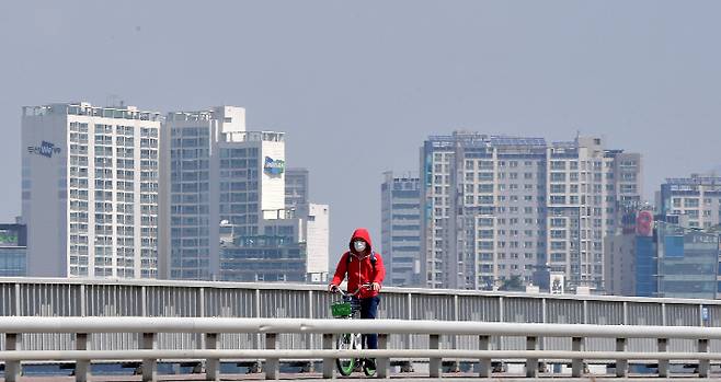 올봄 일곱번째 황사가 예보된 24일 서울 도심이 뿌옇게 보이고 있다. 박종민 기자