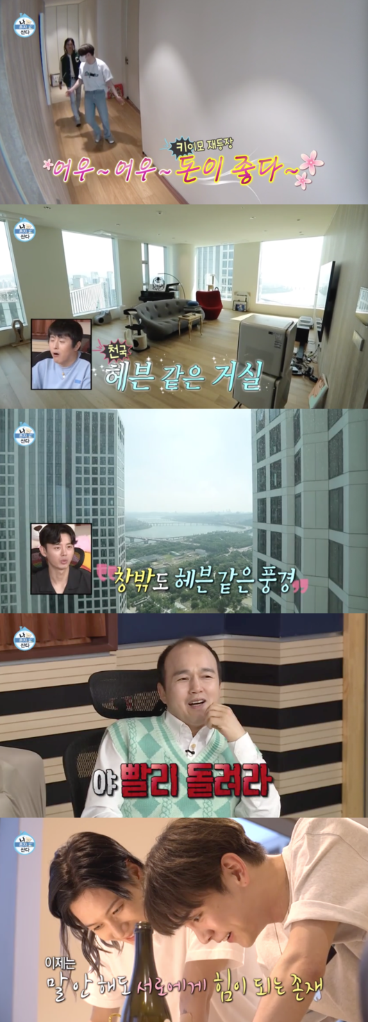 키는 “돈이 좋다”, “어우야 벌고 볼 일이다”라며 거듭 감탄했다. 창밖을 내려다보고선 “속 울렁거려”라고 멀미를 느낄 정도로 아찔한 고층이었다. 이를 본 박나래, 기안84, 이지훈 격하게 부러워했다.