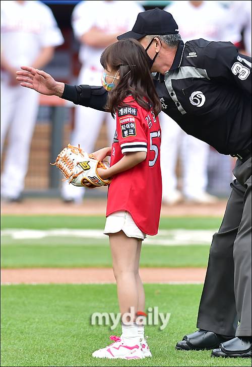 [MD포토] 시구하는 김태균 큰딸 김효린양