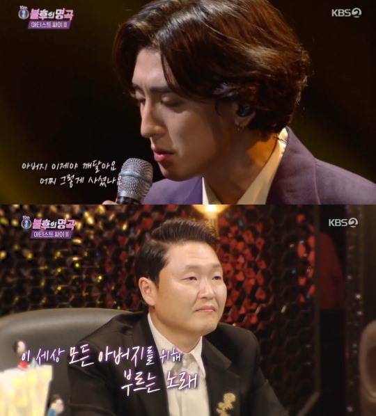 최정훈의 무대에 싸이는 기립박수를 보냈고, 이희문은 "아버지가 일찍 돌아가셔서 아버지란 단어만 나와도 울컥한다"라고 애틋함을 드러냈다.