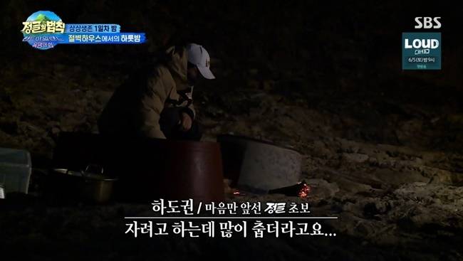 그러나 얼마 되지 않아 하도권은 "많이 춥더라고요. 내일이 힘들 것 같아서 에잇 들어가자 했다"며 철벽 하우스에 들어가 전진과 함께 잤다.