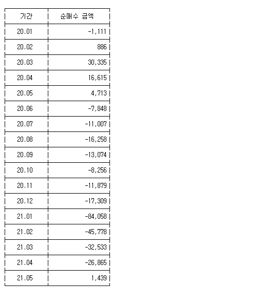 특히 작년 말부터 올해 3월까지 역대 최장인 51거래일간 연속 순매도 기록을 세웠다. 이후 4월에도 2조6천865억원을 순매도하며 매도 우위를 지속했다.