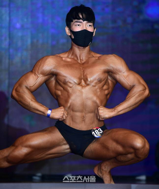 [스포츠서울 글·사진 인천 | 이주상기자] 30일 인천광역시 연수구 라마다 송도 호텔에서 ‘2021 인바코리아 아시안 챔피언십’이 열렸다. 맨즈 클래식 피지크 전체 오픈 B조의 전병대가 완벽한 근육을 뽐내고 있다. 대회를 유치한 명세영 인바코리아 대표는 “인바(INBA)는 IFBB와 함께 세계적인 보디빌딩 및 피트니스 단체다. 명성에 걸맞게 아시아 각국의 일급 선수들이 출전했다. 특히 철저한 반도핑 시스템으로 순수 ‘내추럴’을 지향했다. 국민들에게 건강을 전파하는 데 일조를 담당하고 싶다”고 말했다. 한편 이번 대회는 코로나19 방역지침을 준수하기 위해 참가 선수 전원의 마스크 착용, 객석의 2m 거리 두기, 손세척 등을 실시해 눈길을 끌었다. rainbow@sportsseoul.com