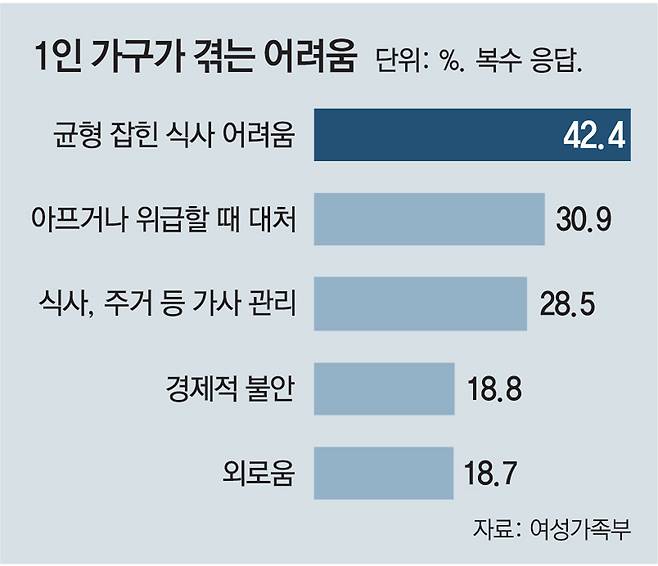 1인가구 절반은 상대적 저소득층… “균형 잡힌 식사 어렵다” 고충 1위