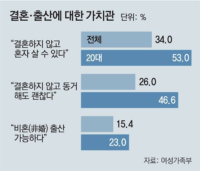 20대 절반 "결혼 NO, 동거 OK".. 23%는 "비혼 출산 가능"