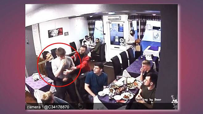 지난 23일 영국의 한 인도 음식점인데요, 한 남성이 갑자기 자신의 가슴을 치며 고통을 호소하자, 옆 좌석에 있던 사람이 남성의 등을 계속 두드려보지만 증상이 호전될 기미를 보이지 않습니다.