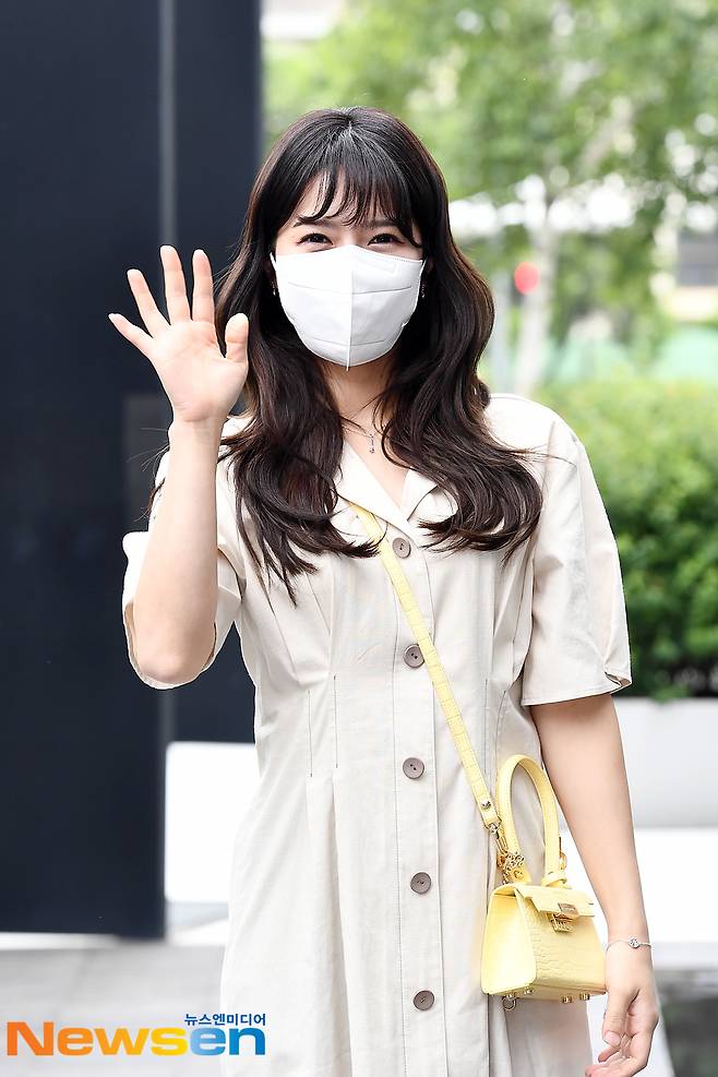 트로트 가수 양지은이 5월 31일 오후 서울 마포구 상암SBS프리즘타워에서 진행되는 SBS FiL, SBS MTV '더 트롯쇼' 일정에 참석하기 위해 방송국으로 들어서고 있다.