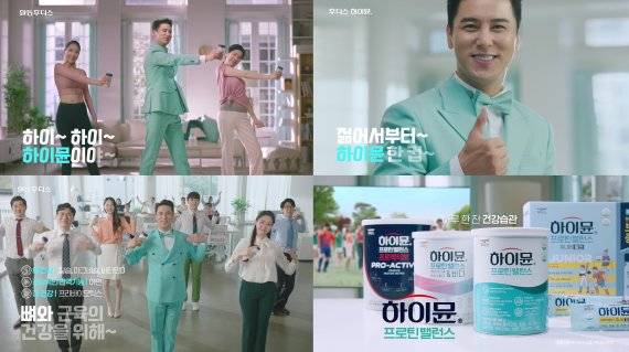 지난해 선보였던 '하이뮨 프로틴 밸런스' 광고는 중독성 넘치는 '하이~하이~ 하이뮨이야' 가사와 모델 장민호가 직접 부른 CM송으로 호응을 얻은 바 있다. 이번 광고는 업그레이드 된 '하이뮨송'으로 활력과 에너지를 전달한다. '채워주네요 산양유 단백질까지' '젊어서부터 하이뮨 한 컵' 등 핵심 메시지를 담았다.