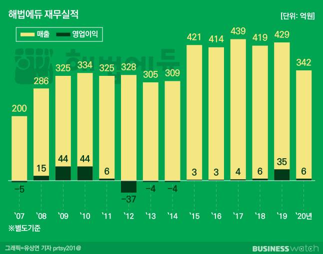 해법에듀는 2007~2011년 매출 200억~300억원대에 영업이익은 첫 해를 빼고 4년간 한 해 평균 27억원을 벌어들였다. 배당은 2009~2011년 3년간 오너 일가에 총 45억원이 주어졌다.