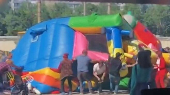마지막 소식입니다. 러시아에서 아이들이 뛰어노는 '에어바운스', 즉 공기 주입 미끄럼틀이 8m 가까이 공중으로 떠올랐다가 추락하는 사고가 있었습니다.