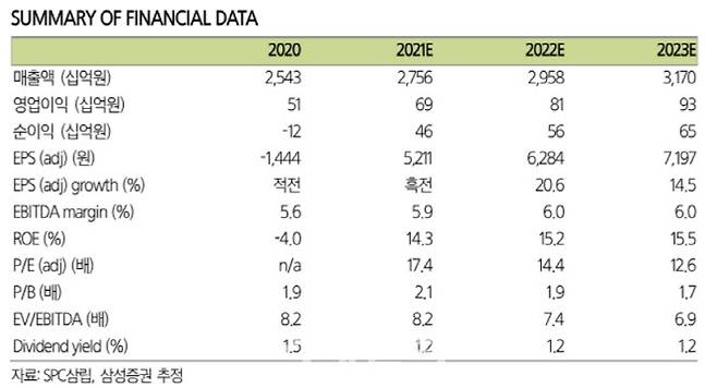 조 연구원은 “코로나19 장기화에 따른 반사이익을 누렸다고도 볼 수 있으나, 전략적인 성공 요인이 더 컸다고 판단한다”며 “SPC삼립은 고성장하고 있는 식빵 수요에 대응하기 위하여 선제적으로 식빵 캐파(생산능력·capa)를 증설하였고, 온라인 채널에 대응하기 위하여 새벽배송 채널 확대, 카테고리 확장, 채널별 특성에 맞는 전략적인 제품 출시에 집중하고 있다”고 짚었다. 이어 “최근 코로나19 수혜 채널인 온라인, 시판 채널뿐만 아니라 편의점, 할인점, B2B 채널 역시 회복 추세라 코로나19 완화에 따른 수혜를 더욱 기대할 수 있다”고 덧붙였다.