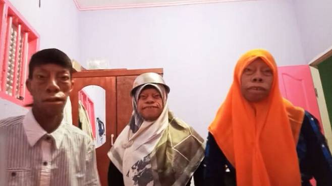 세 남매가 음악에 맞춰서 춤을 춥니다. 리듬도 단조롭고 동작도 평범해 보이는데 특이점이 있다면 이들의 얼굴입니다.