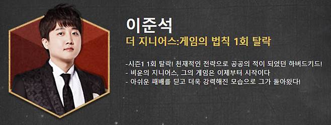 지난 시즌에서 다수 연합에 밀려 탈락했던 그는, 시즌4 1화부터 다수파에 붙는 척하다가 내부 합의를 깨고 자신의 원래 파트너였던 김경훈과의 연합으로 단독 우승을 노렸다. 비록 한 수 위의 플레이어였던 이상민이 김경훈을 포섭해 이 전략은 실패하고, 그의 배신의 희생자였던 유정현의 지목으로 데스매치를 하게 됐지만 승리해 살아남았다. 1회전의 중요 신스틸러가 되고 승부사로서의 실력을 증명한 건 덤이다. 이후 그는 9회까지 살아남았다. 이것은 그가 잘한 덕도 있지만, 첫 시즌 1회전 탈락이 비록 정당한 승부에서의 패배라 해도 그것만으로 그를 평가하지 않고 재도전의 기회를 준 덕이기도 하다. 비유하자면, 그는 <더 지니어스> 시즌4 출연자 구성에 있어 패자부활전 할당제의 수혜자인 셈이다. 첫 시즌 1회전 탈락과 시즌4에서의 9회전 탈락 중 무엇이 더 공정 혹은 불공정 하느냐는 질문은 의미가 없다. 1회전 탈락자에게도 다시 기회가 주어지는 것, 그것이 공정한 세상이다. 정치인 이준석이 공정을 말할 때마다 자신의 <더 지니어스> 1회전 탈락을 떠올리길 바란다.