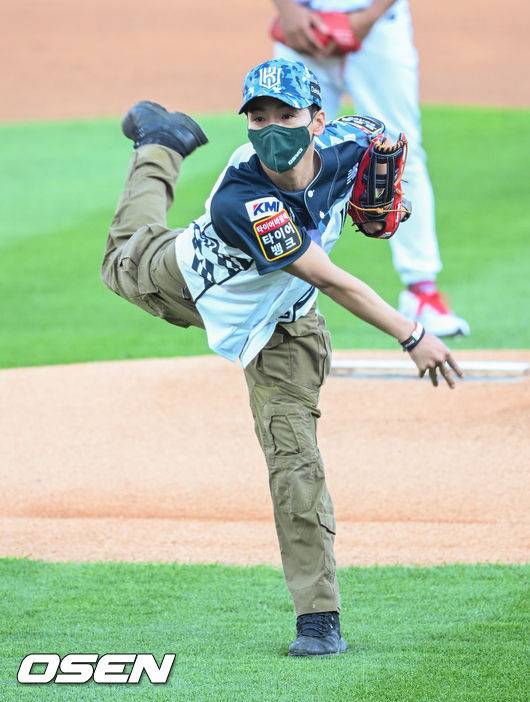 경기에 앞서 호국 보훈의 달을 맞아 가수 박준우(박군)이 시구를 하고 있다. 21.06.04 / soul1014@osen.co.kr