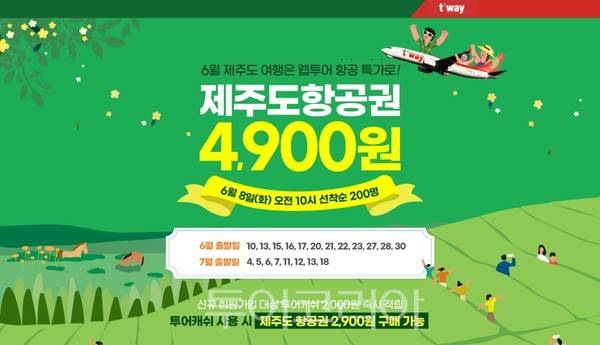 웹투어는 제주도 항공권 4,900원 특가 이벤트를 오는 8일 화요일 10시에 오픈한다.