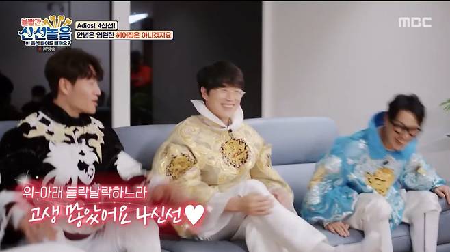 이날 서장훈, 김종국, 성시경, 하하 4신선은 오랜만에 천상계 복장으로 등장해 눈길을 끌었다.