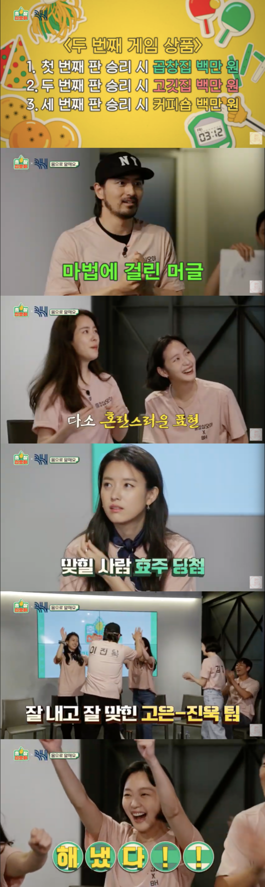 김고은의 찰떡같은 설명에 이진욱은 쭉쭉 정답을 맞혀나갔고 다섯문제를 맞혀 고기를 획득했다.