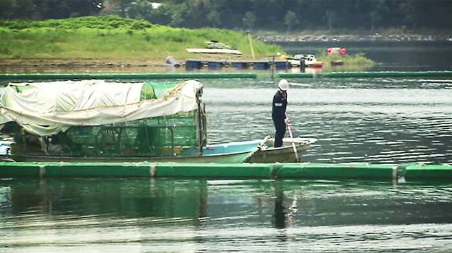 공사는 수익 사업으로 저수지 한쪽에 수상골프연습장을 임대해 줬는데 재계약을 앞두고 주민들과 업체 간의 갈등이 커지고 있습니다.