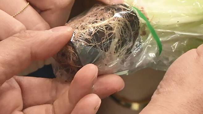 이곳에서 자란 채소를 뿌리 그대로 살려, 마트에서 팔고 있습니다.