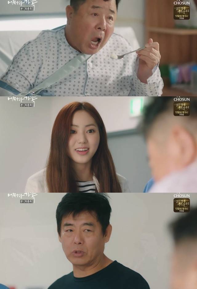 6월 6일 방송된 TV조선 홈드라마 '어쩌다 가족' 12화에서 성동일(성동일 분), 진희경(진희경 분), 성하늘(권은빈 분)은 할아버지 일섭(백일섭 분)의 병문안을 갔다.