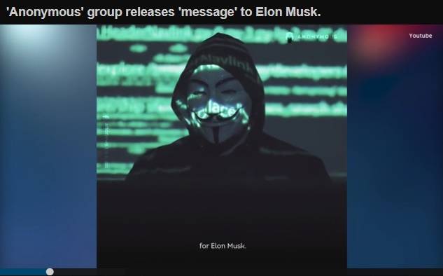 영국 데일리메일 등 외신에 따르면, 어나니머스는 지난 5일(현지시간) 유튜브에 '머스크에게 보내는 어나니머스의 메시지'라는 영상을 올려 이처럼 밝혔다.
