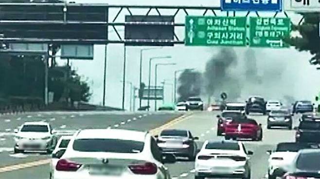 엔진이 과열되면서 불이 난 것으로 추정되는데, 다행히 다친 사람은 없었습니다.