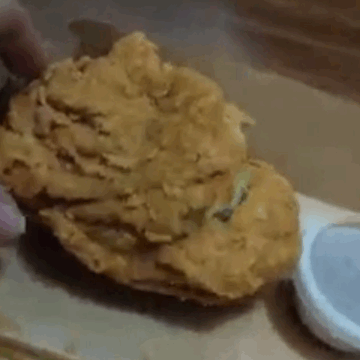 한창 식사를 하던 페레즈 씨는 치킨 조각들 사이에서 유난히 묵직하고 커다란 덩어리를 발견했습니다. 그런데 아이들이 편하게 먹을 수 있도록 작게 썰려고 해도 썰리지 않았습니다.