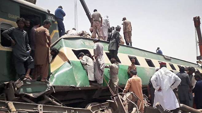 탈선 열차 그대로 충돌..파키스탄서 최소 35명 사망