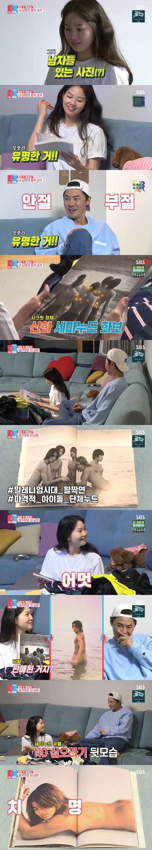 이날 집 정리 중 류이서는 전진이 그동안 꼭꼭 숨겨왔던 신화 누드 화보집을 발견했다. 류이서는 "이게 그거야? 그 유명한 거"라며 해맑게 화보집을 펼쳤고, 이내 내용물을 보고 큰 충격에 빠졌다. 누드집 속 전진의 파격적인 엉덩이 노출을 적나라하게 마주한 것.