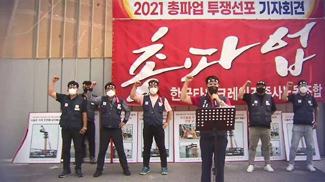 [최동주/건설노조 타워크레인분과 위원장 : 건설현장 안전을 지키기 위한 총파업을 이 시간부로 돌입함을 선포합니다.]