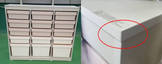 표준원이 검사한 제품은 유아용 수납장 아이보리베이지2 색상으로 즉각 리콜 명령을 내렸습니다.