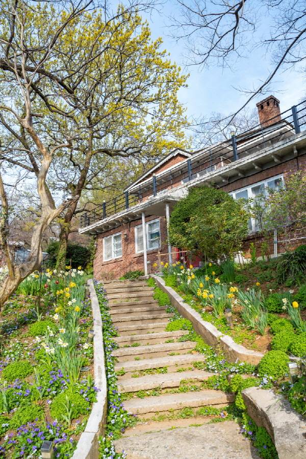 아트주 정헌기 대표는 언더우드선교사사택과 뉴수마선교사사택을 개조해 2013년부터 호랑가시나무언덕 게스트하우스, 호랑가시나무창작소, 아트폴리곤을 운영하고 있다. 디자이너 겸 문화기획자인 그는 100년이 넘은 고택과 그 주변에 마법을 뿌렸다. 빨간 벽돌집과 북미의 숲에서나 볼 법한 거목들이 어우러진 이 공간은 도시도 아니고, 현재도 아니고, 한국도 아닌 것 같다. 봄이면 1층 주방 통유리창 앞으로 수선화가 노란 물결을 이루고, 여름이면 아름드리 배롱나무가 2층 테라스에 꽃잎을 떨구고, 가을이면 호랑가시나무의 새빨간 열매가 주렁주렁 열려 겨우내 새들의 먹이가 되어 준다.