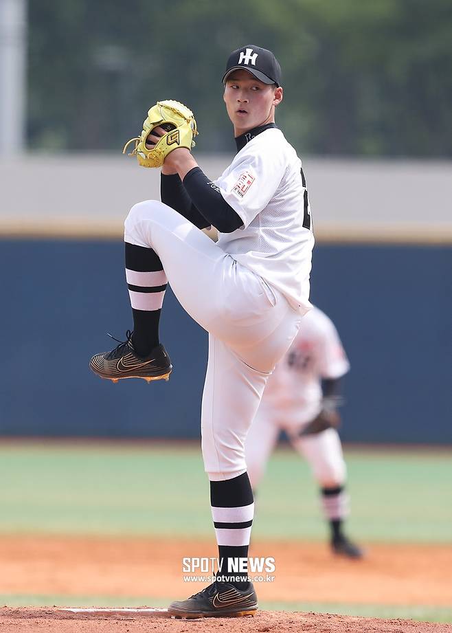 [스포티비뉴스=목동, 곽혜미 기자] 제 75회 황금사자기 전국고교야구대회 강릉고와 인천고의 8강전이 10일 오후 서울 양천구 목동야구장에서 열렸다. 인천고 선발 이호성이 와인드업 하고 있다.