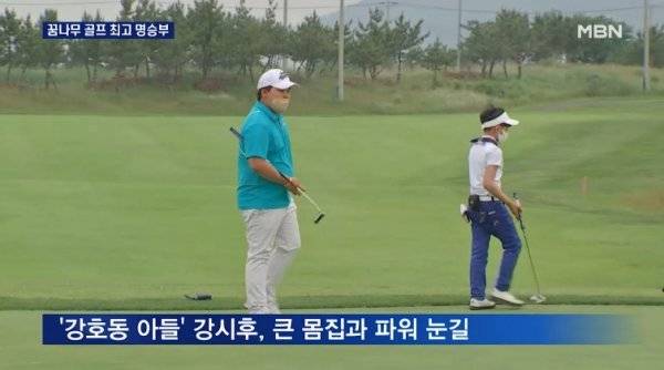방송인 강호동 아들 강시후 군이 골프선수로서 뉴스에 출연했다.