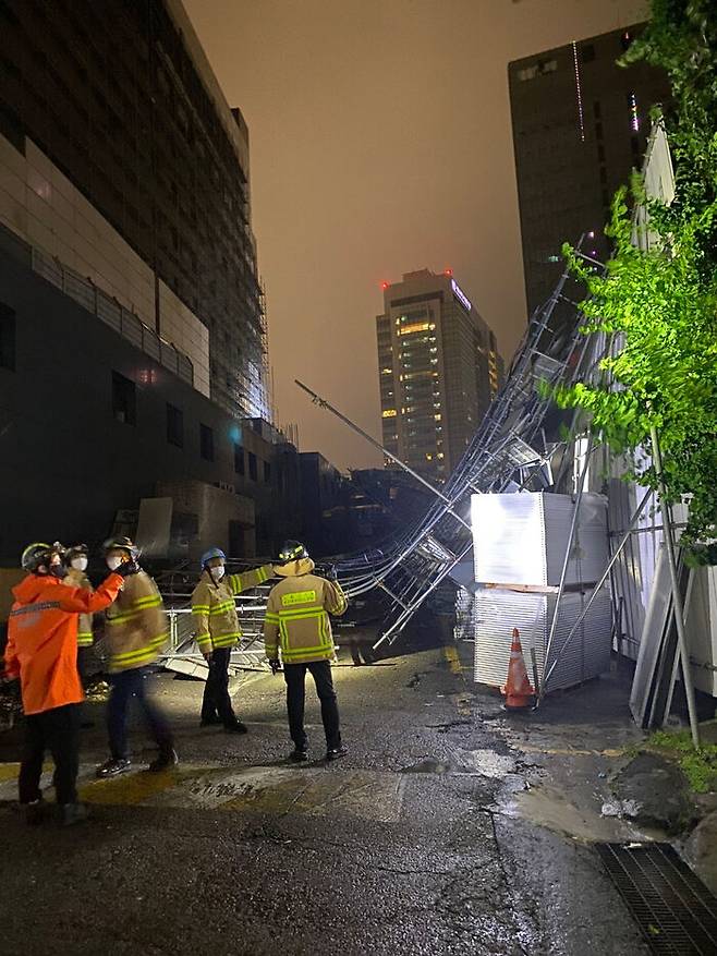 현장 관계자는 "바람이 많이 불어서 비계가 쓰러진 것 같다"고 출동한 소방대원에게 말한 것으로 전해졌습니다.