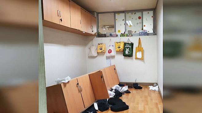 이 가운데 1명은 하반신 마비로 병원에서 수술을 받고 중환자실에서 치료 중인 것으로 알려졌는데요, 이번 사고에 대해 전국 학교 비정규직 노동조합은 비좁은 공간에 옷장을 무리하게 설치해서 발생한 인재라고 주장했습니다.