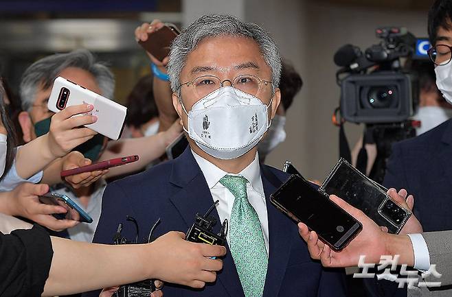 이성윤 신임 서울고검장이 11일 서울 서초동 고검 청사로 출근하고 있다. 이 고검장은 이날 오전 청사 내에서 고검 직원들만 참석한 상태로 취임식을 진행했다. 박종민 기자