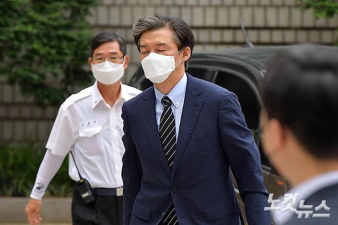 자녀 입시비리와 유재수 전 부산시 경제부시장 감찰 무마 등 혐의로 재판에 넘겨진 조국 전 법무부 장관이 11일 서울중앙지법에서 열린 9차 공판에 출석하고 있다. 박종민 기자