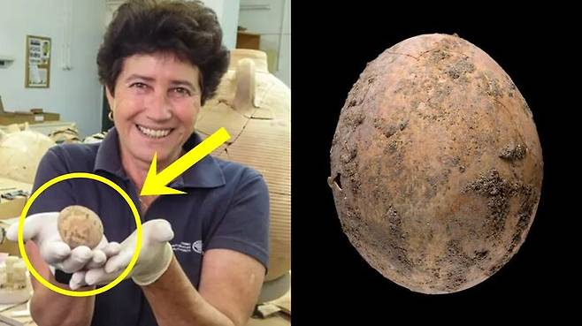 발굴팀은 분석을 위해 어쩔 수 없이 달걀을 깨뜨렸는데, 미세한 균열 때문에 내용물 대부분이 새 나간 상태였습니다.